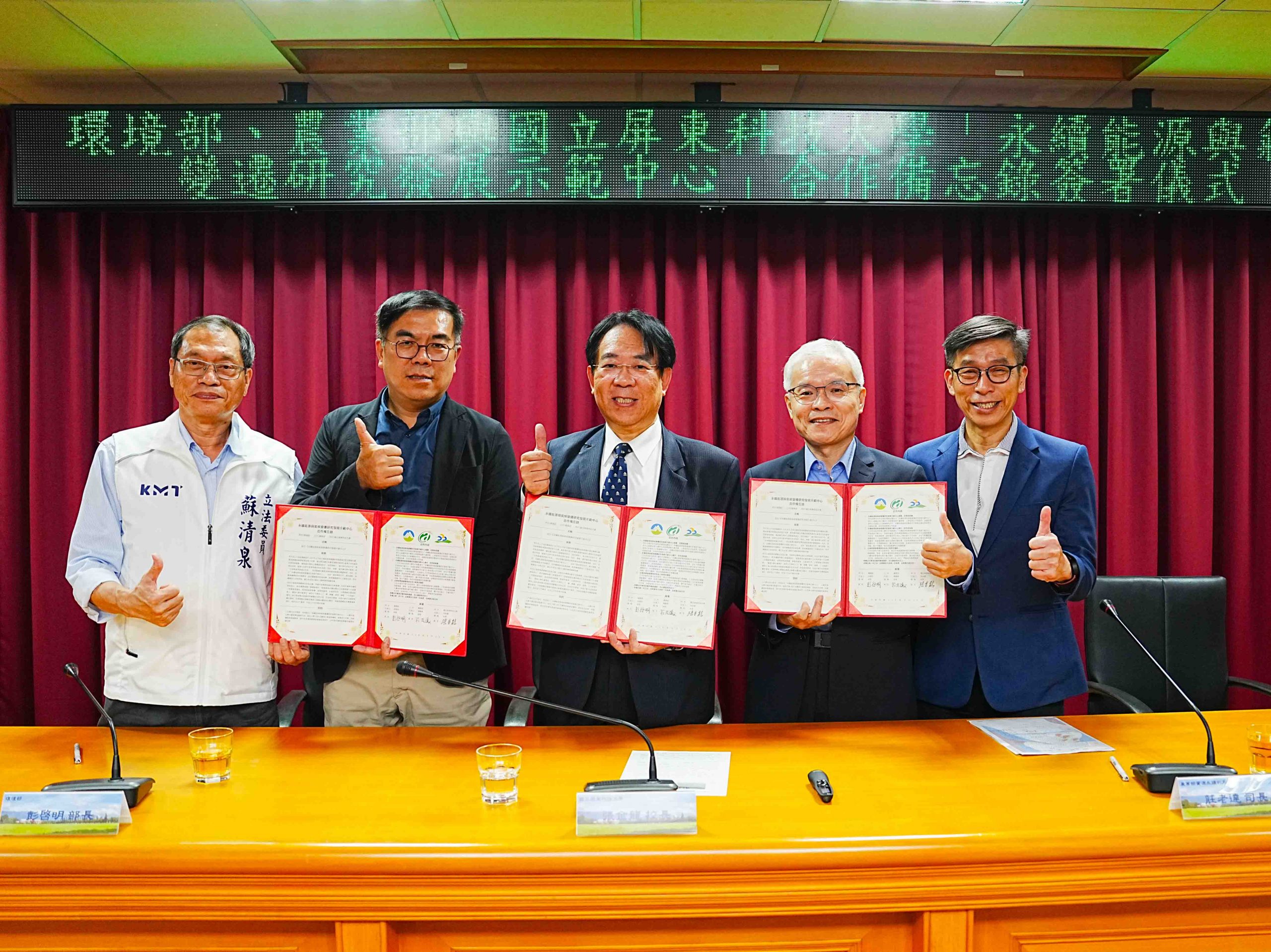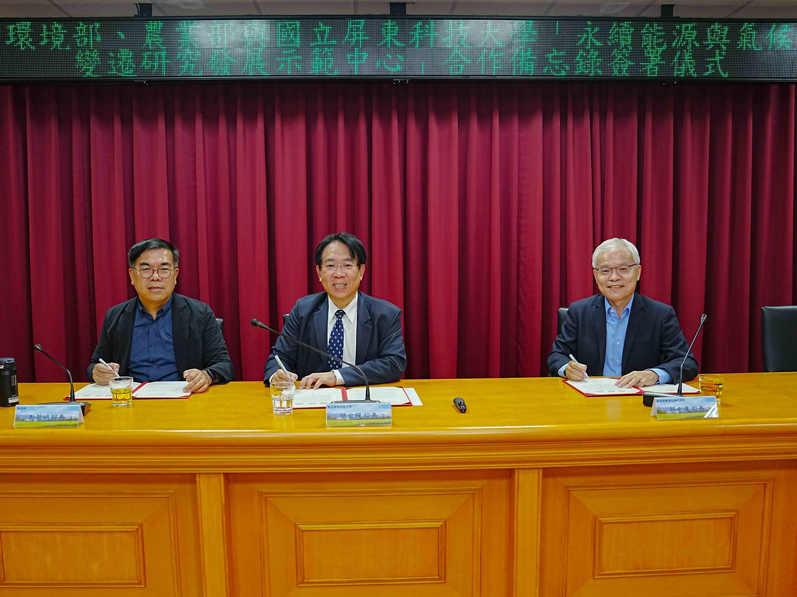 National Pingtung University of Science and Technology (NPUST), the Ministry of Environment (MOENV), and the Ministry of Agriculture (MOA) signed a Memorandum of Understanding on September 26, 2025, to establish a Sustainable Energy and Climate Change Research and Development Demonstration Center.