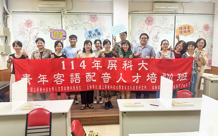 The program, which was funded under the SIG Highlight Project at the NPUST College of Humanities and Social Sciences, recruited students from NPUST and local youth who possess basic Hakka language skills. Experienced professionals were invited to instruct the classes including, Ms. Song Jing-Ling, a Golden Bell Award-winning radio host and veteran Mandarin, Hakka, and Taiwanese voice actor and Ms. Zi-Ling Luo, a voice-over supervisor and a host on Hakka Radio.