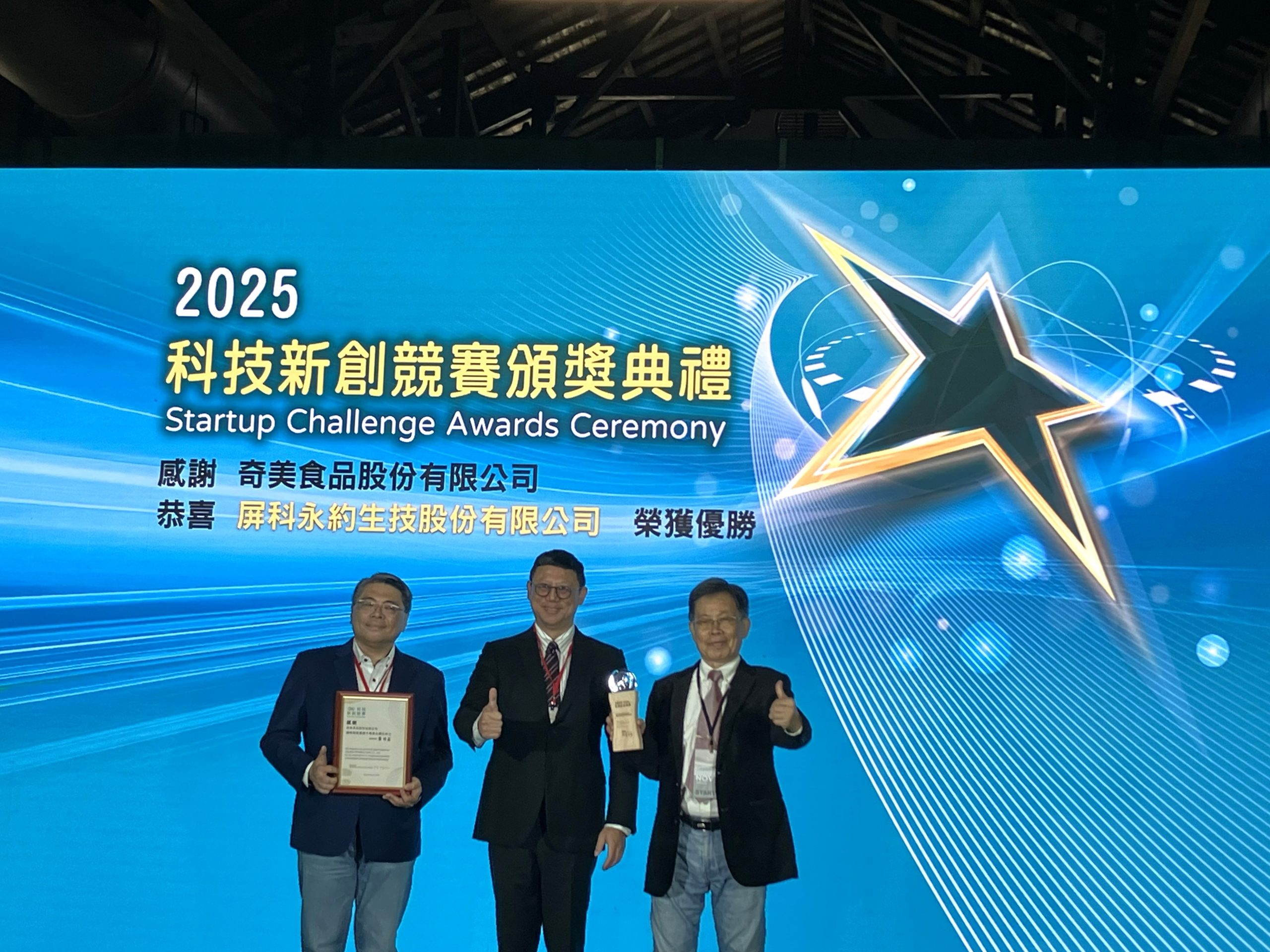 On November 26 the company participated in the “2025 Startup Challenge” hosted by the Small and Medium Enterprise and Startup Administration (SMESA) of the Ministry of Economic Affairs (MOEA), and stood out among the competition to win first-prize in the Heath & Care category. The award ceremony was held at the Songshan Cultural and Creative Park in Taipei City, where the team also had an exhibition booth set up to share their research results.