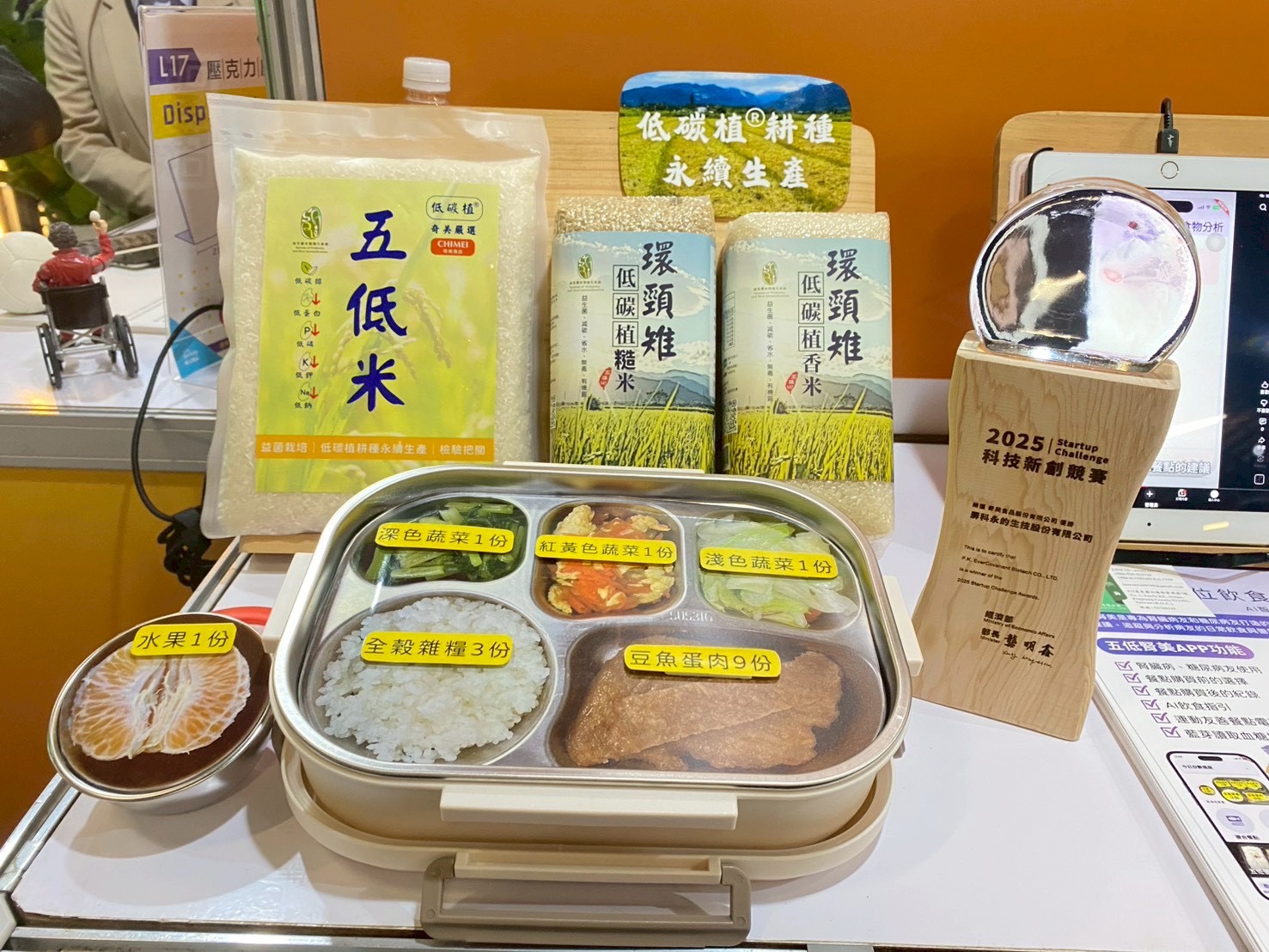 At the venue, the team demonstrated to industry, government, and academic professionals how they have used their “Five-Low Rice” (low-protein, low-sodium, low-phosphorus, low-potassium, and low-carbon emission) to create a comprehensive health-diet management toolkit for patients with Chronic Kidney Disease (CKD) and those in high-risk groups. Their toolkit includes a CKD Food Box, an AI photo recognition meal identification system, and a Five-Low Shenmei APP that connects to Bluetooth blood glucose meters and a nutritional database. Covering everything from individual ingredients to complete meals, the system ensures product traceability while promoting healthy eating, responsible production, and climate action.