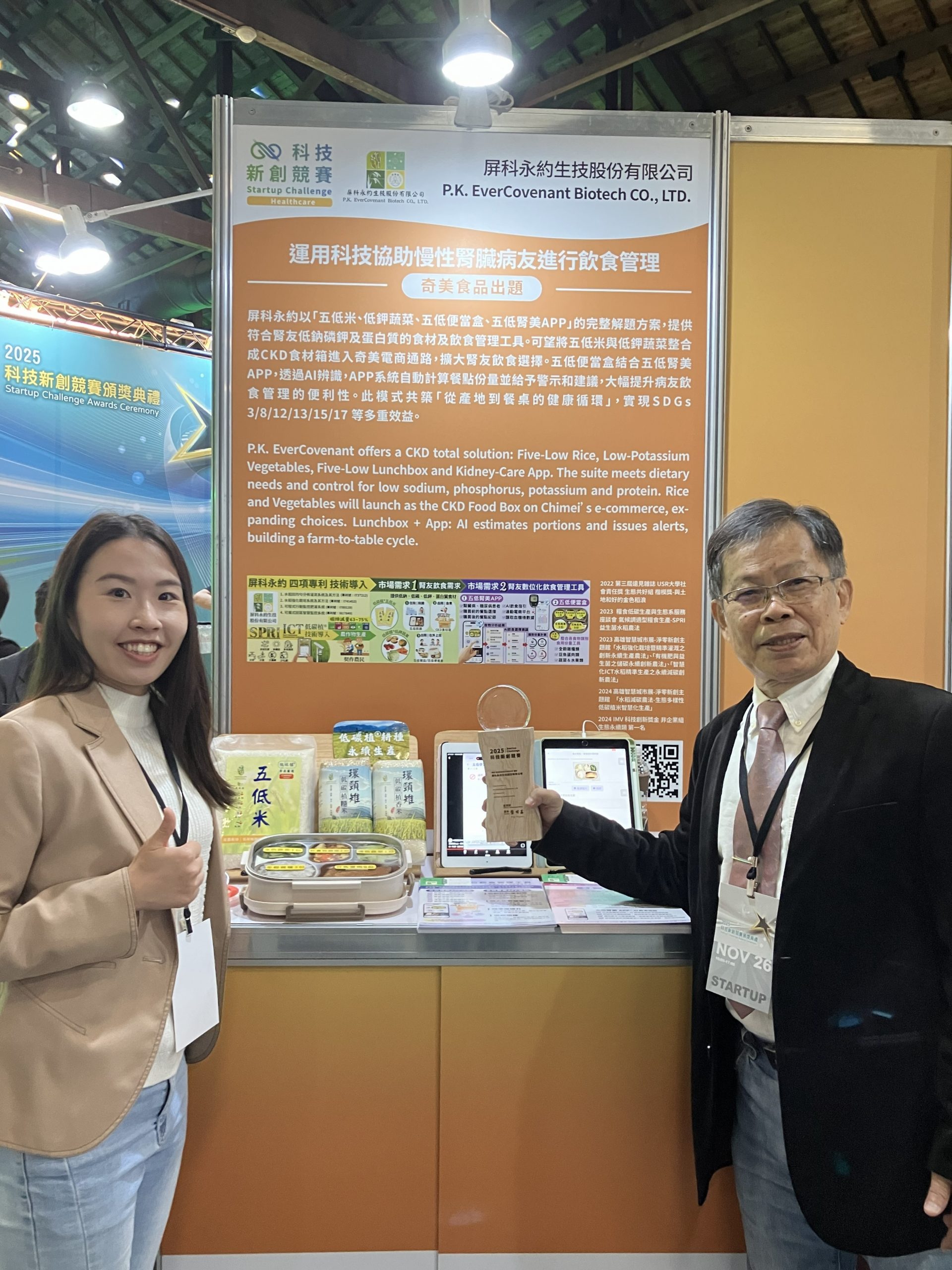 P.K. Evercovenant is built upon the years of experience accumulated by the research team in technological agriculture, nutrition, medical care, and AI technology. By integrating functional food ingredient research and development with digital tools, the company is dedicated to creating a care experience that is “palatable for the patient, visible to the medical staff, and manageable for the family.” In the future, the company plans to launch a CKD Food Box that combines Five-Low Rice and low-potassium vegetables on the Chimei e-commerce platform and other medical care channels, hoping to significantly improve the convenience of dietary management for patients.