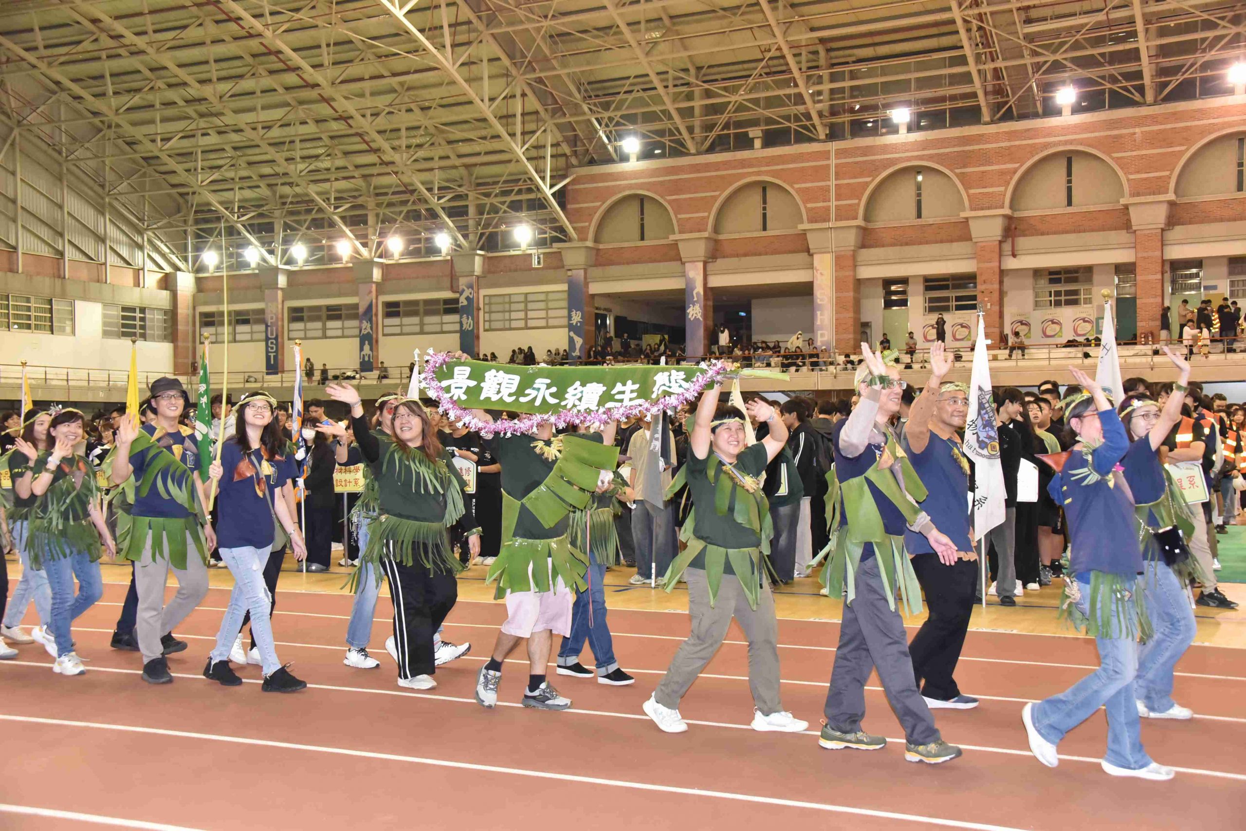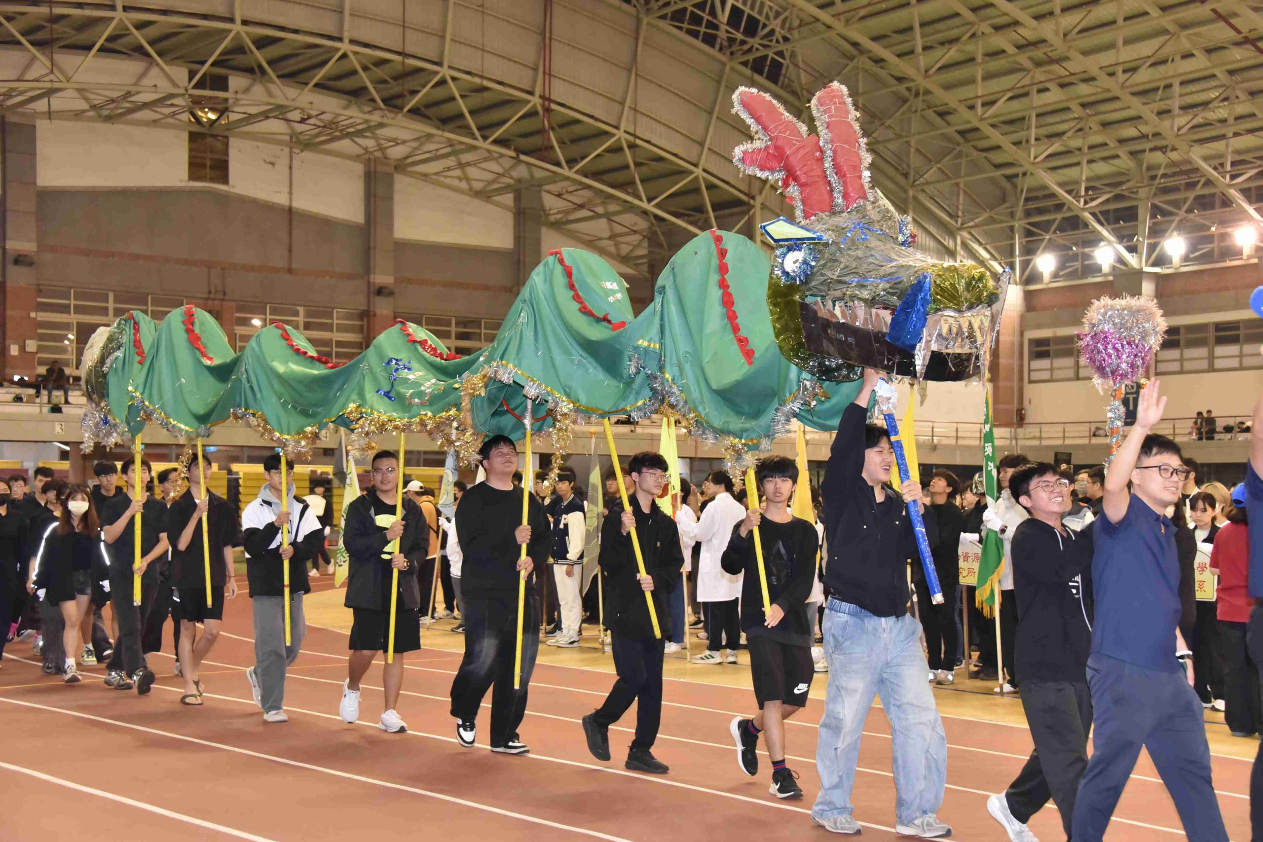 This year’s Creative Entrance Competition was divided into the Administrative Division and the Academic Division. The former was composed of 17 administrative units, including the NPUST Physical Education Office, Review Committee, the Secretariat, and the Working Dog Training Center, with the NPUST Kindergarten children concluding the procession. The latter included 46 colleges, departments, and graduate institutes. Each unit participated in the opening march with creative costumes, slogans, and formations, offering an entertaining and visually striking display that fully demonstrated NPUST’s vibrant campus culture and team spirit.