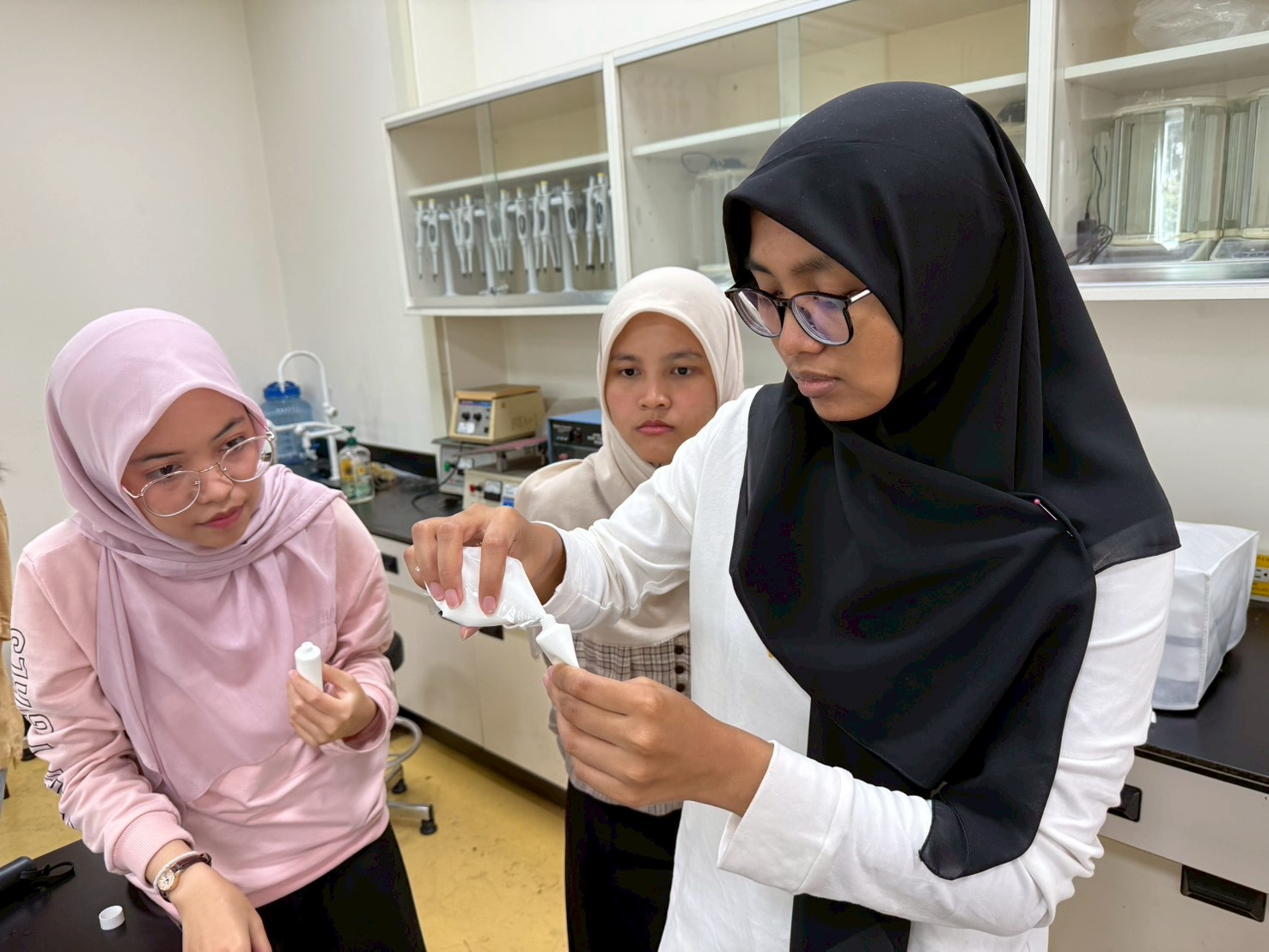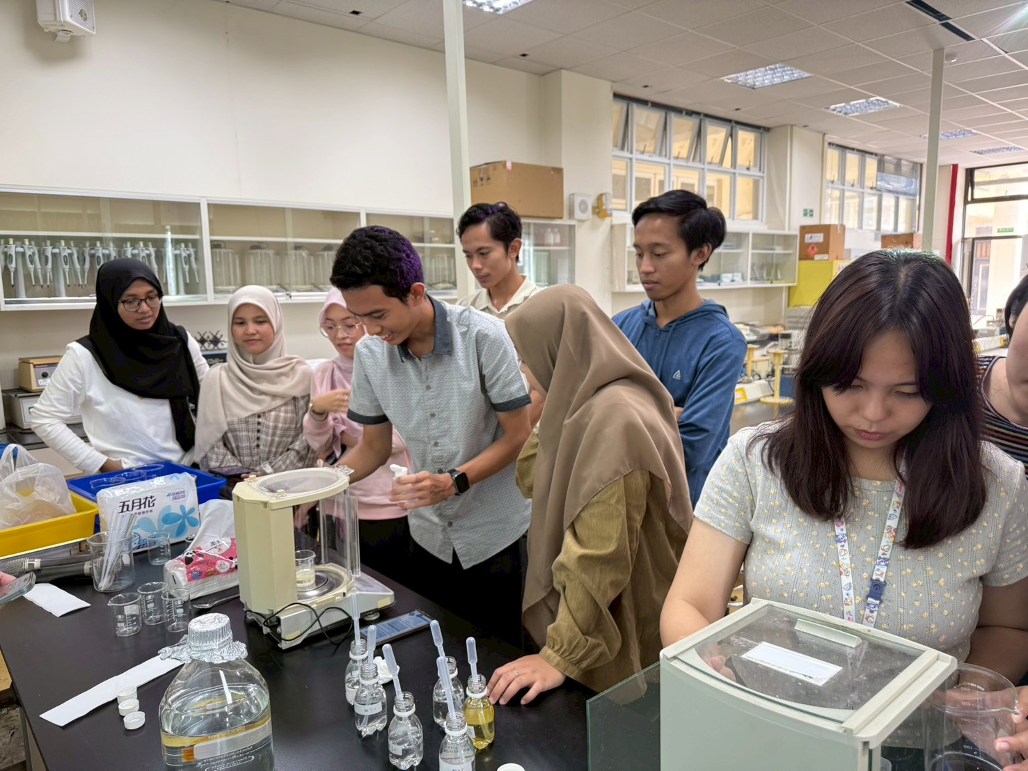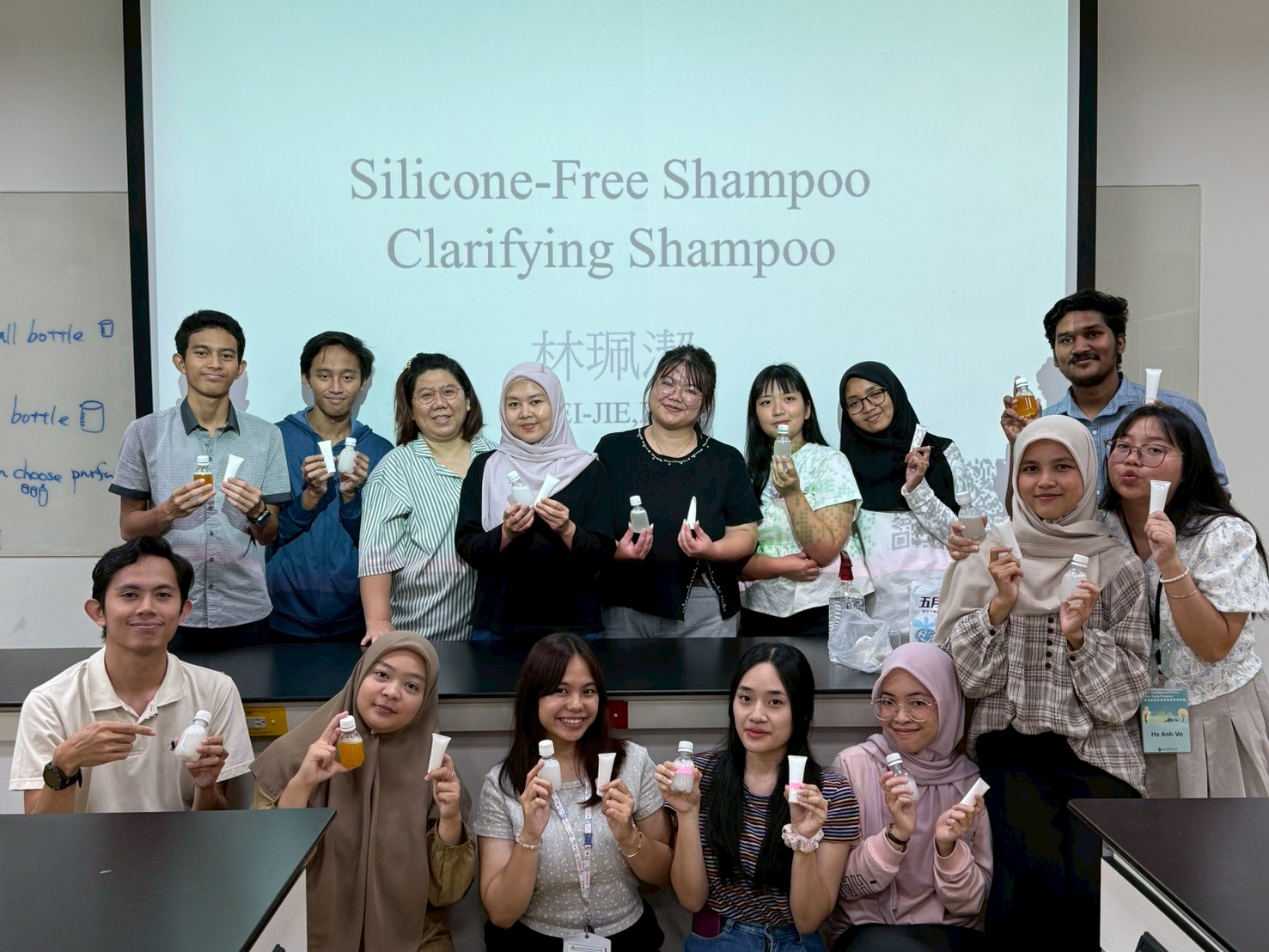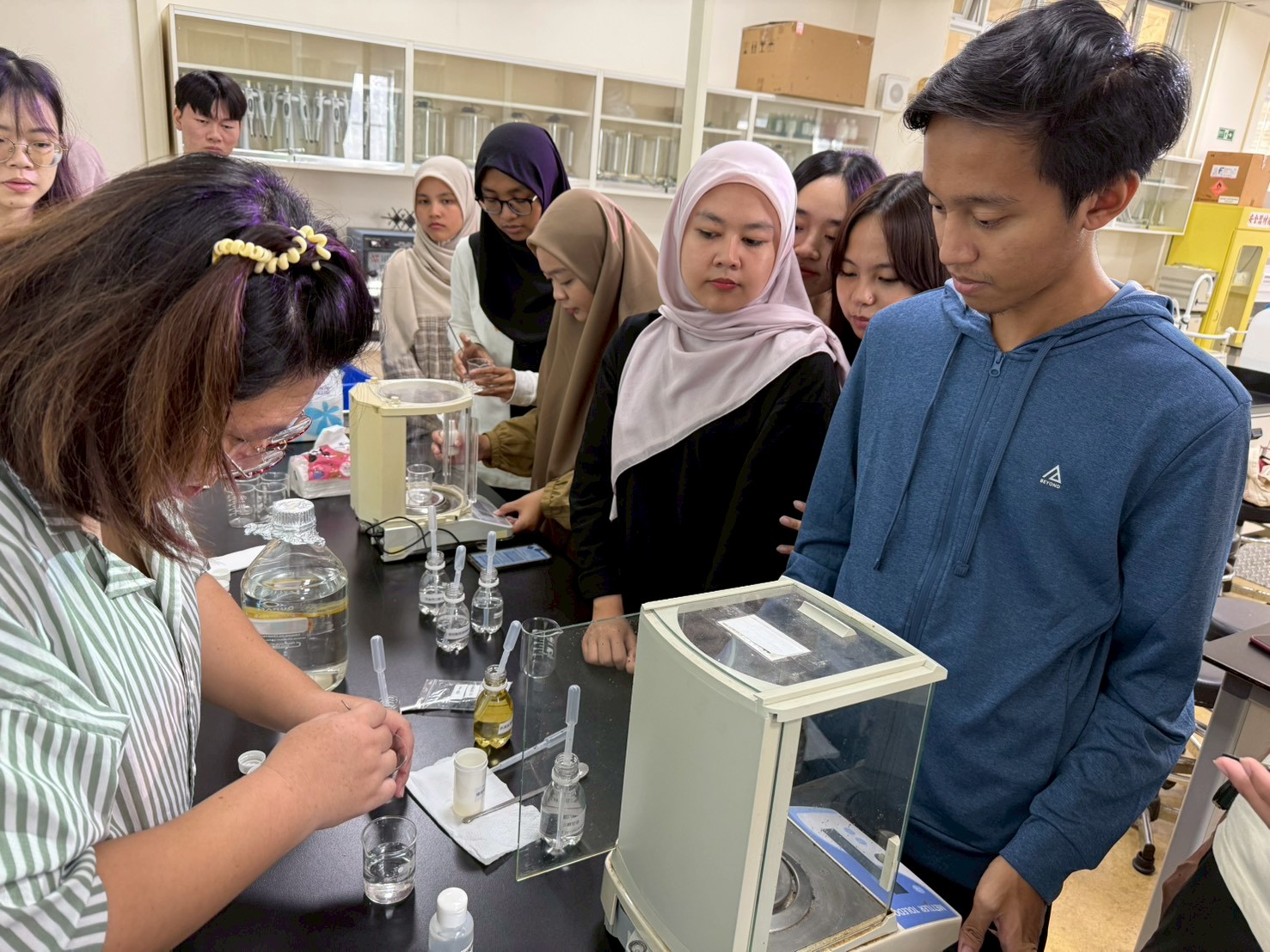 The second experiential learning activity was held on October 21st, during which time the OIA brought students to a Department of Biotechnology laboratory for a hand cream and shampoo making activity. The session was led by industry lecturer Pei-Chieh Lin and NPUST Professor Wen-Ling Shih, who explained the production steps and the practical implementation of formulas. Following the activity, the participants responded enthusiastically, finding it novel and highly rewarding to personally create their own daily essentials.