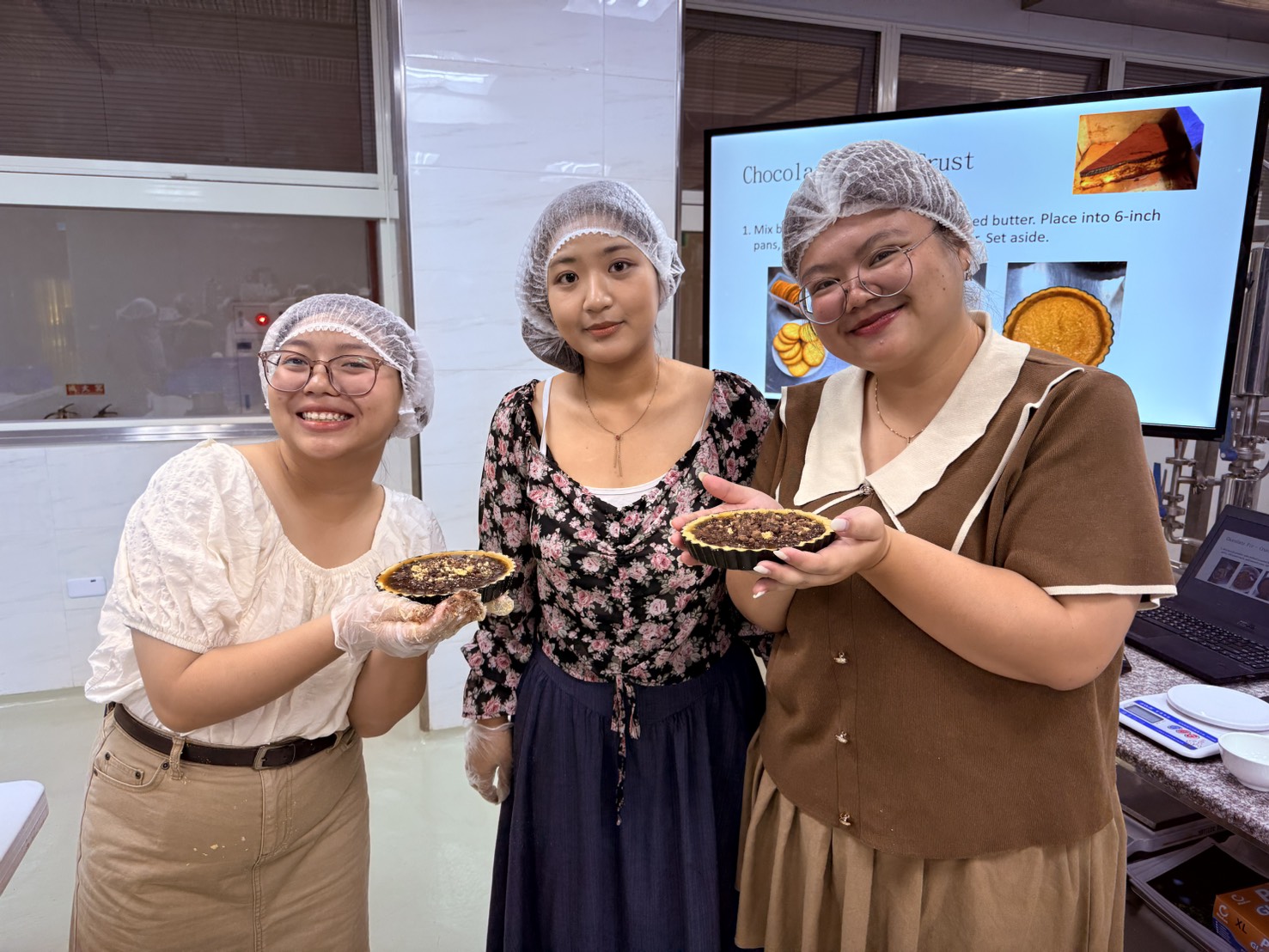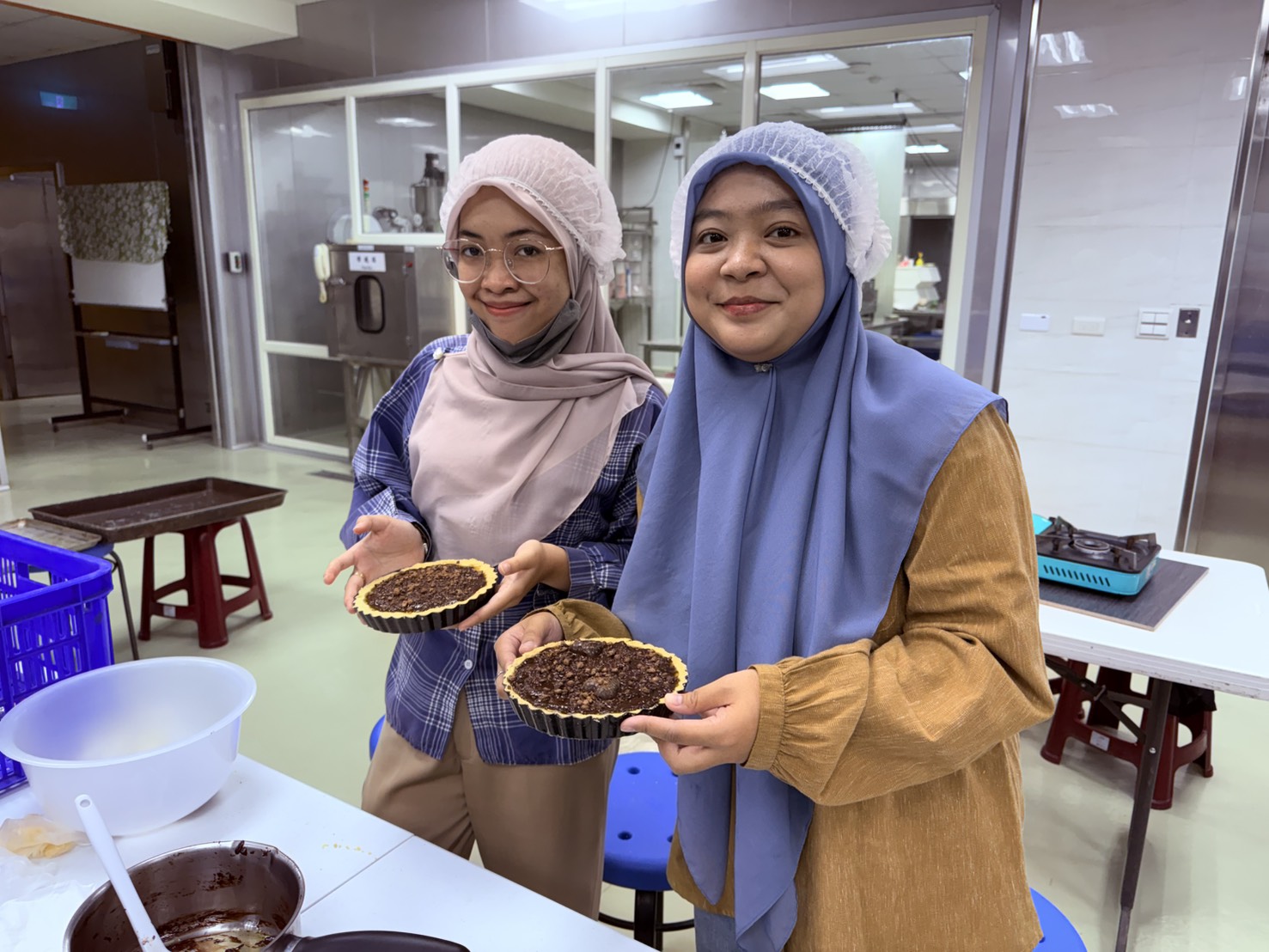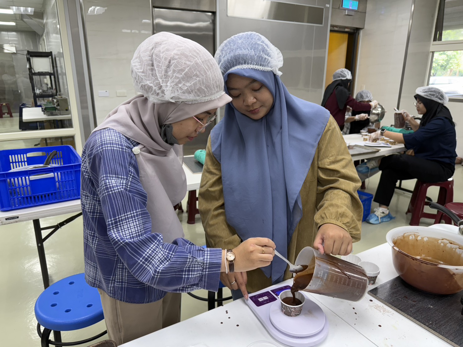On October 14th, the OIA brought the students to the campus’s Simulated GMP Food Production Line. While there, Director Shyang-Chwen Sheu of NPUST’s Center for Innovative Food Technology and Assistant Professor Chi-Hung Lin led an activity designed to let students experience the complete food production process: from ingredient preparation and mixing to baking and packaging. By making chocolate pies and chocolate cupcakes, the students gained insights into food processing hygiene and quality control standards. They also developed a solid understanding of Taiwan’s food manufacturing technology and GMP guidelines.