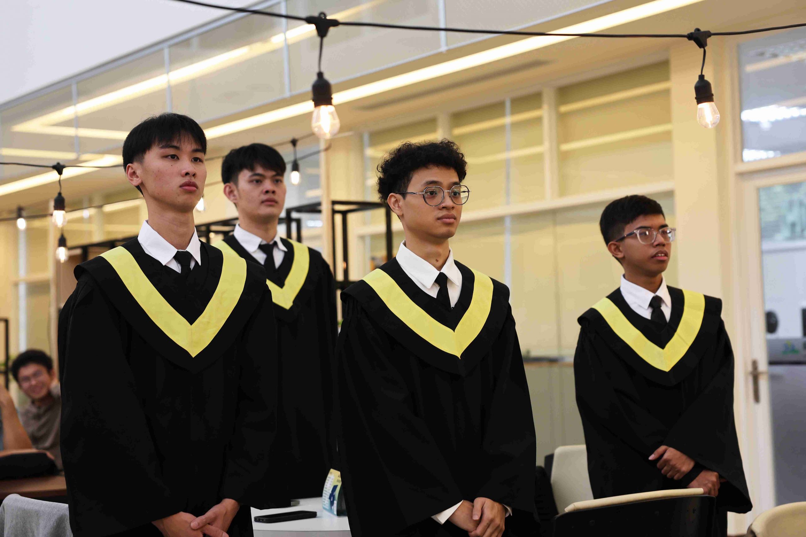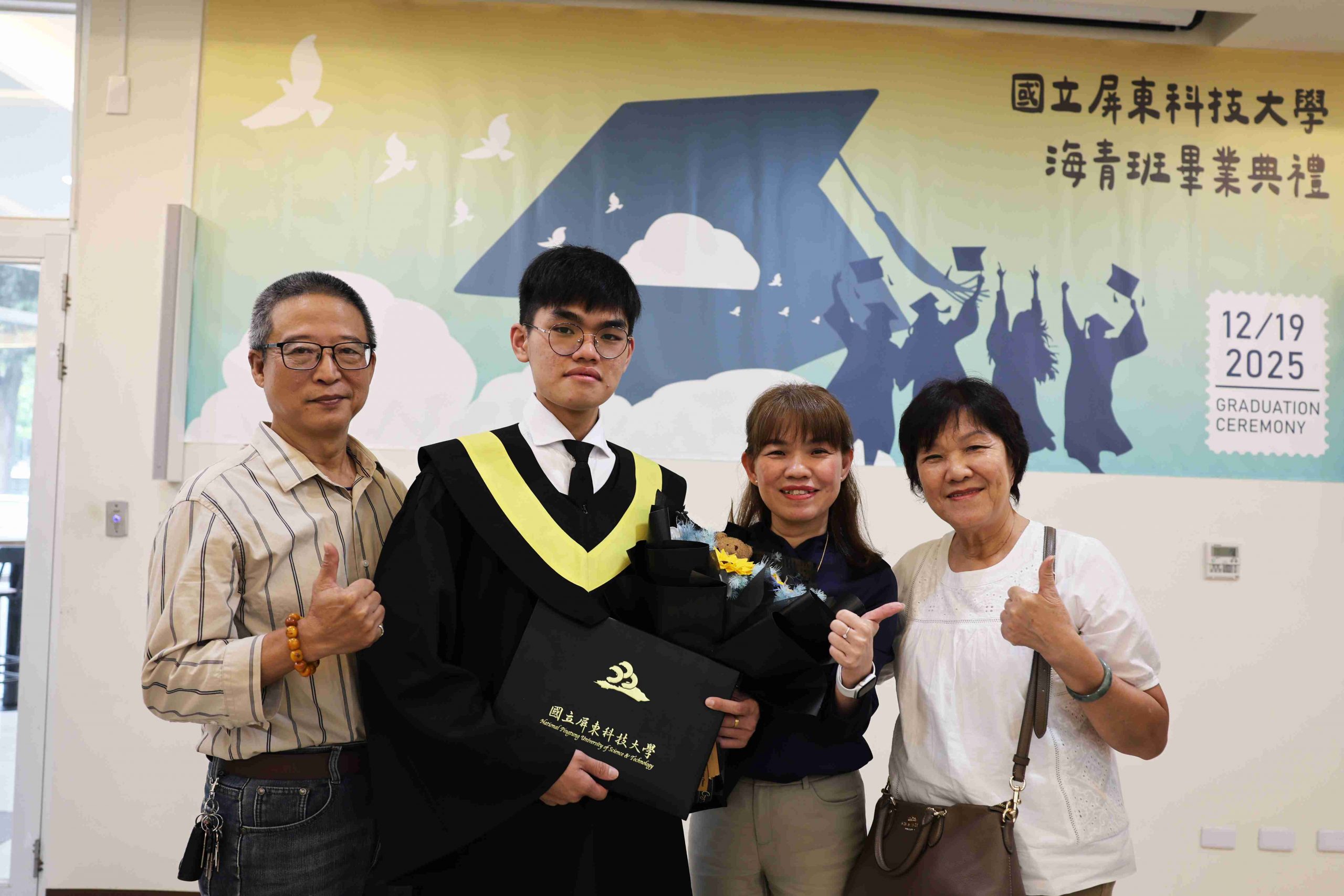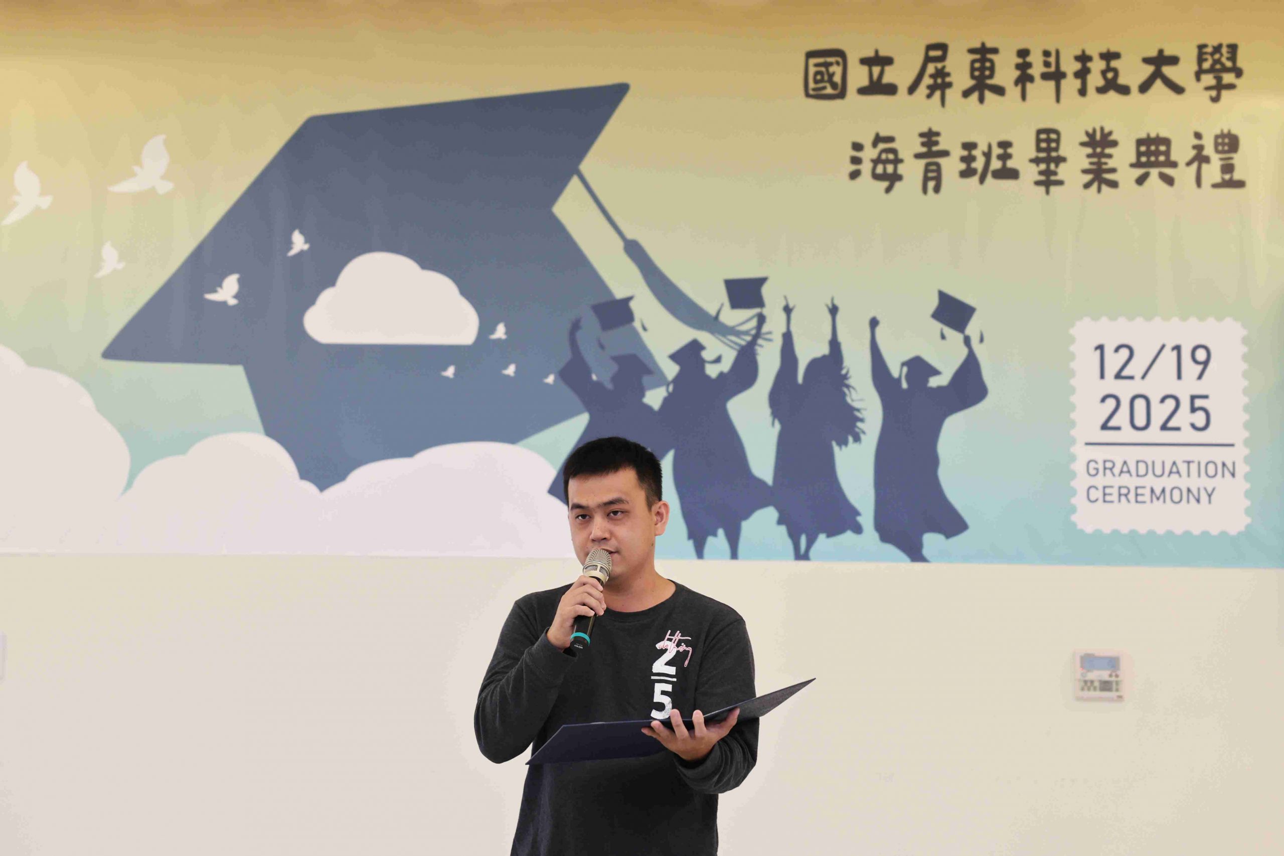 Dean Ru-Chu Shih personally presented the graduation certificates, and Director Yu-Shen Liang and Assistant Professor Wei-Chen Chen presented awards for Academic Excellence and Outstanding Conduct. Representing the graduates, Tan Yit Kai delivered a speech expressing gratitude for the teachers’ guidance and the companionship of his peers—also sharing his growth and achievements during his time in Taiwan. Representing the current students, Lam The Khang offered sincere blessings and the continuation of friendship as the torch was passed to the next class of students.
