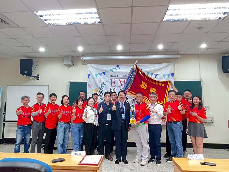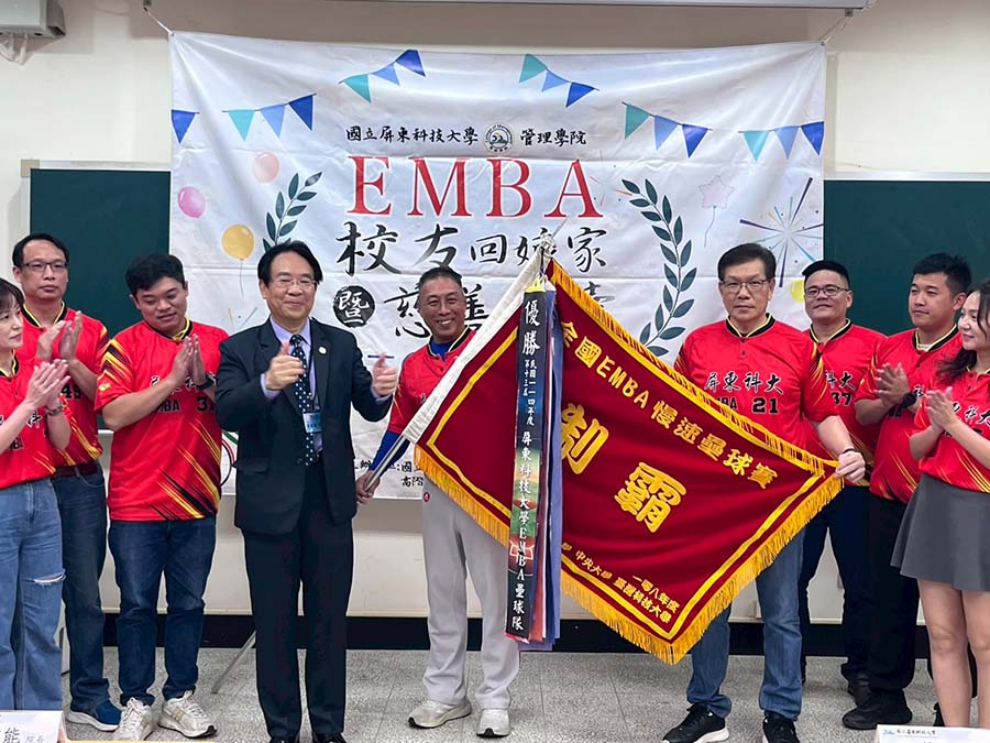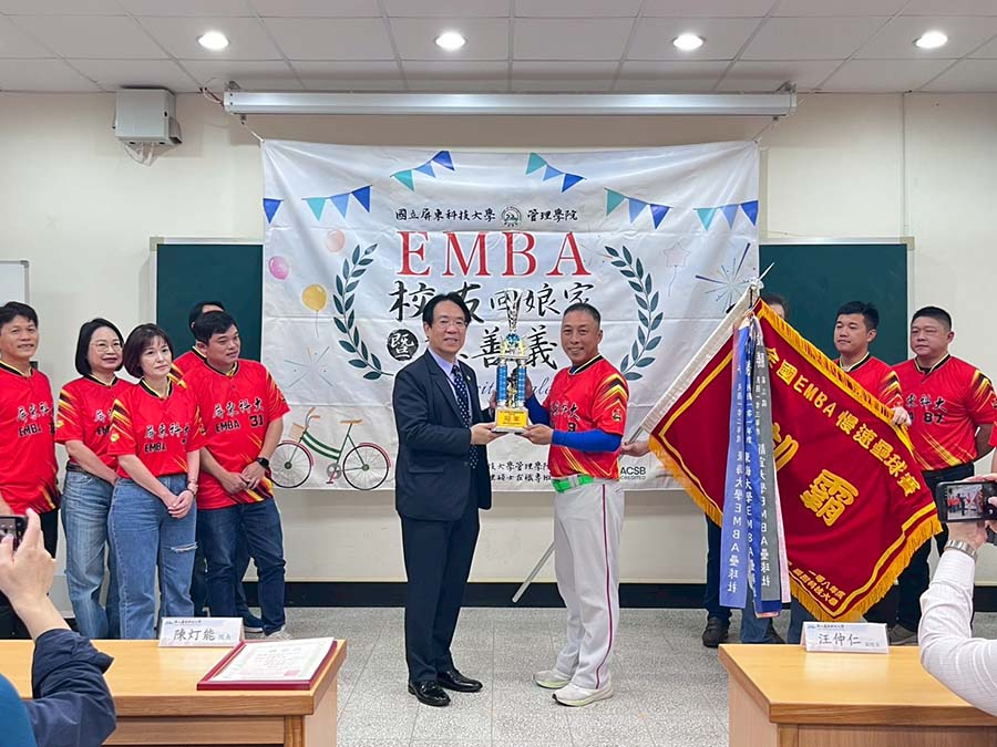 As this year marks NPUST’s 101st-anniversary celebration, President Chin-Lung Chang incorporated a championship banner presentation ceremony for the EMBA Softball Team into the anniversary schedule. He affirmed the team’s exceptional performance in the national competition and the efforts they made to bring honor to the university.