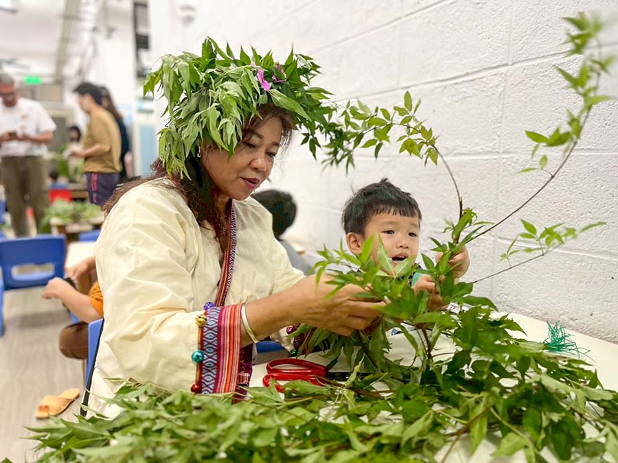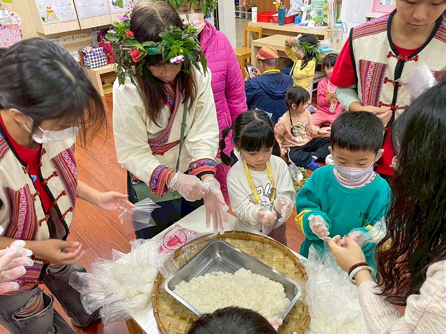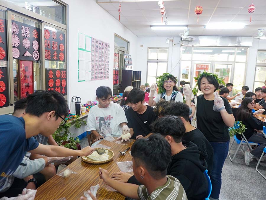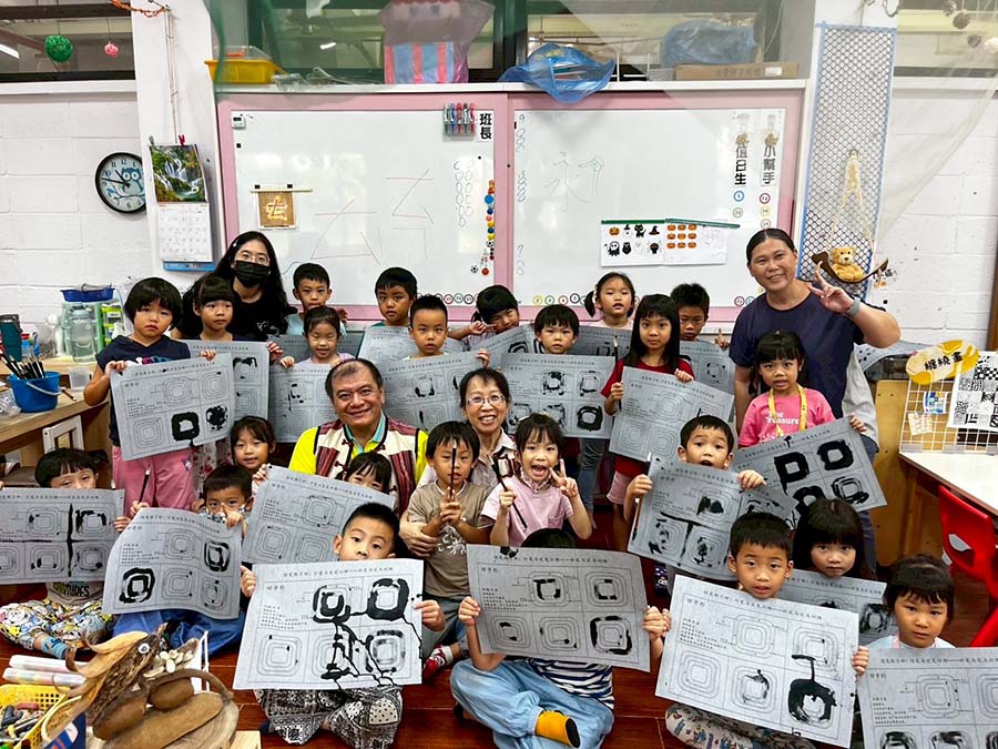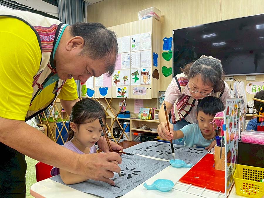 The project also brought learning activities to the NPUST Non-Profit Kindergarten. Yu-Mei Lin, Chairperson of the Laopi Community Development Association, and community builder Yan-Bao Pan shared with the children, and explained the significance of Makatao Vitex (Pujiang) headbands and glutinous rice balls. Through a five-sensory experience—feeling the aroma of leaves and the texture of rice—the children transformed abstract culture into physical memory. Also, making use of alumni resources, Kung-Ho Huang, Standing Supervisor of the NPUST Alumni Association, was asked to organized a calligraphy course for senior kindergarteners.
