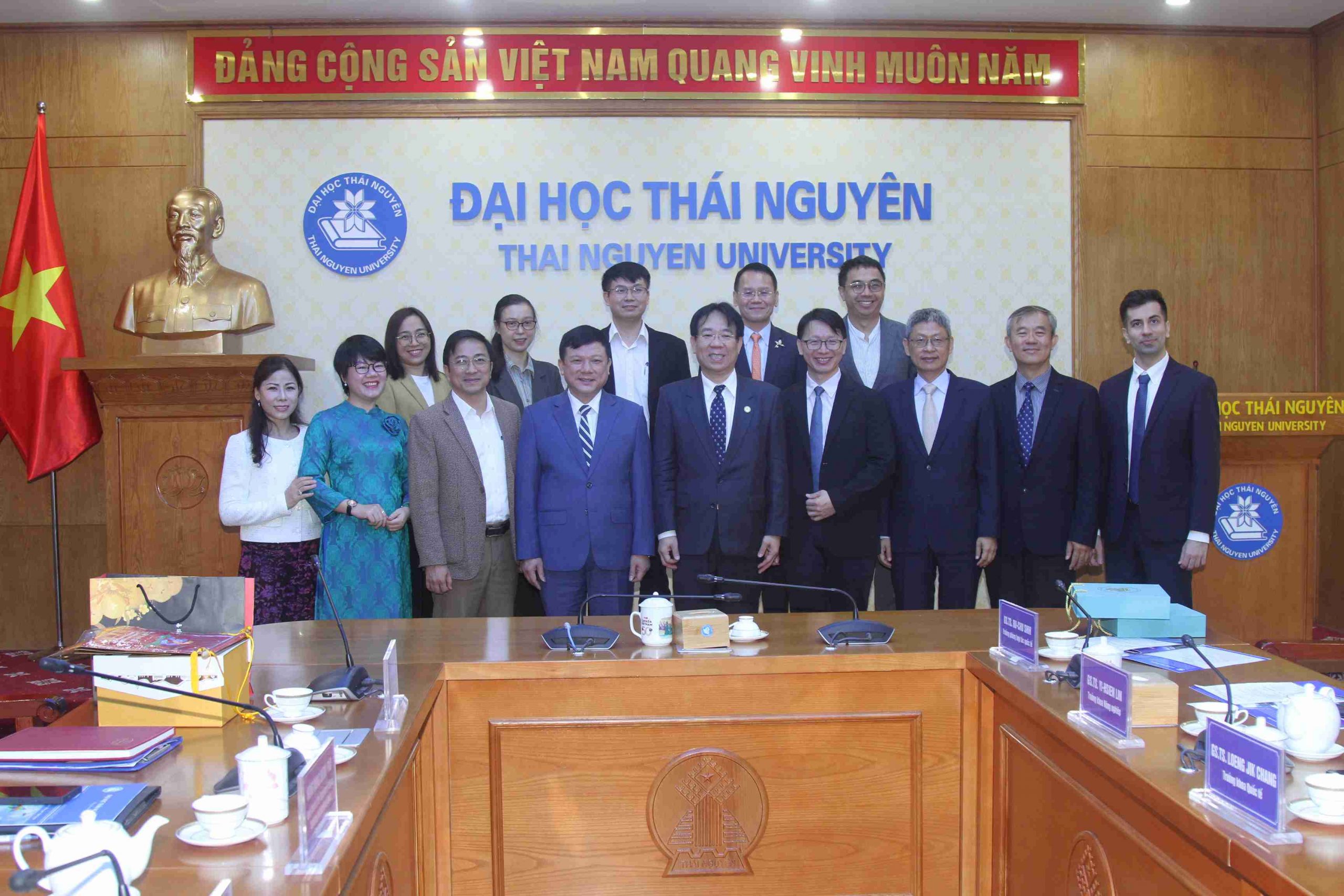 The visit to Thai Nguyen University was arranged at the invitation of its President, Dr. Hoang Van Hung, who received the guests with a warm reception. During the exchange, both parties introduced the university developments, academic strengths, and international cooperation achievements of their respective institutions. Discussions focused on faculty and student exchanges, dual-degree programs, and interdisciplinary research. That afternoon, the delegation from Taiwan visited classrooms of Chinese and English taught courses at TNU’s International School to interact with students and faculty. They also took part in Vietnamese cultural experiences to deepen educational and cultural ties.