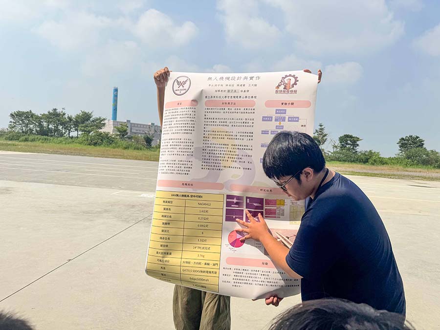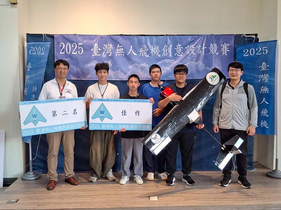The 2025 Taiwan UAV Creative Design Competition, organized by the Aeronautical and Astronautical Society of the Republic of China (AASRC), was recently held at the Asia UAV AI Innovation Application R&D Center in Chiayi. At the event, a team of faculty and students from National Pingtung University of Science and Technology (NPUST) showcased their innovative fixed-wing UAV, “Sky Code X”, standing out among 17 finalist teams from major universities nationwide to secure Second Place Aircraft Design Award in Flight Maker Category and an Honorable Mention for the Creativity Awards group.