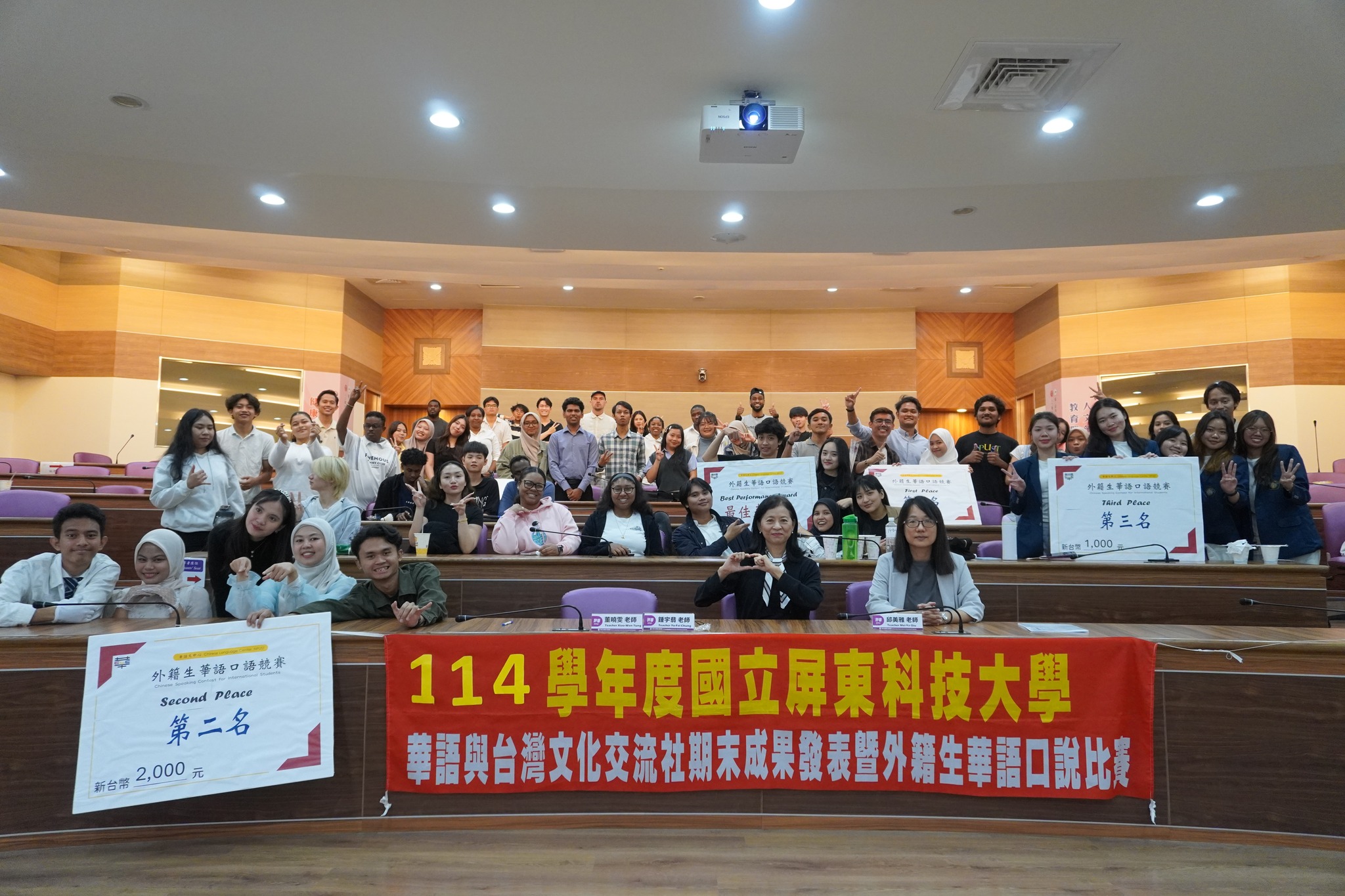 NPUST nominee Angela Kwee, a student from Indonesia, was honored with the “Minister’s Award” and delivered an acceptance speech on behalf of the NPUST cohort. Speaking entirely in Mandarin, Angela shared her learning journey and cultural experiences in Taiwan, demonstrating excellent language proficiency and a profound understanding of Taiwanese society and culture, which earned unanimous praise from the distinguished guests in attendance.
