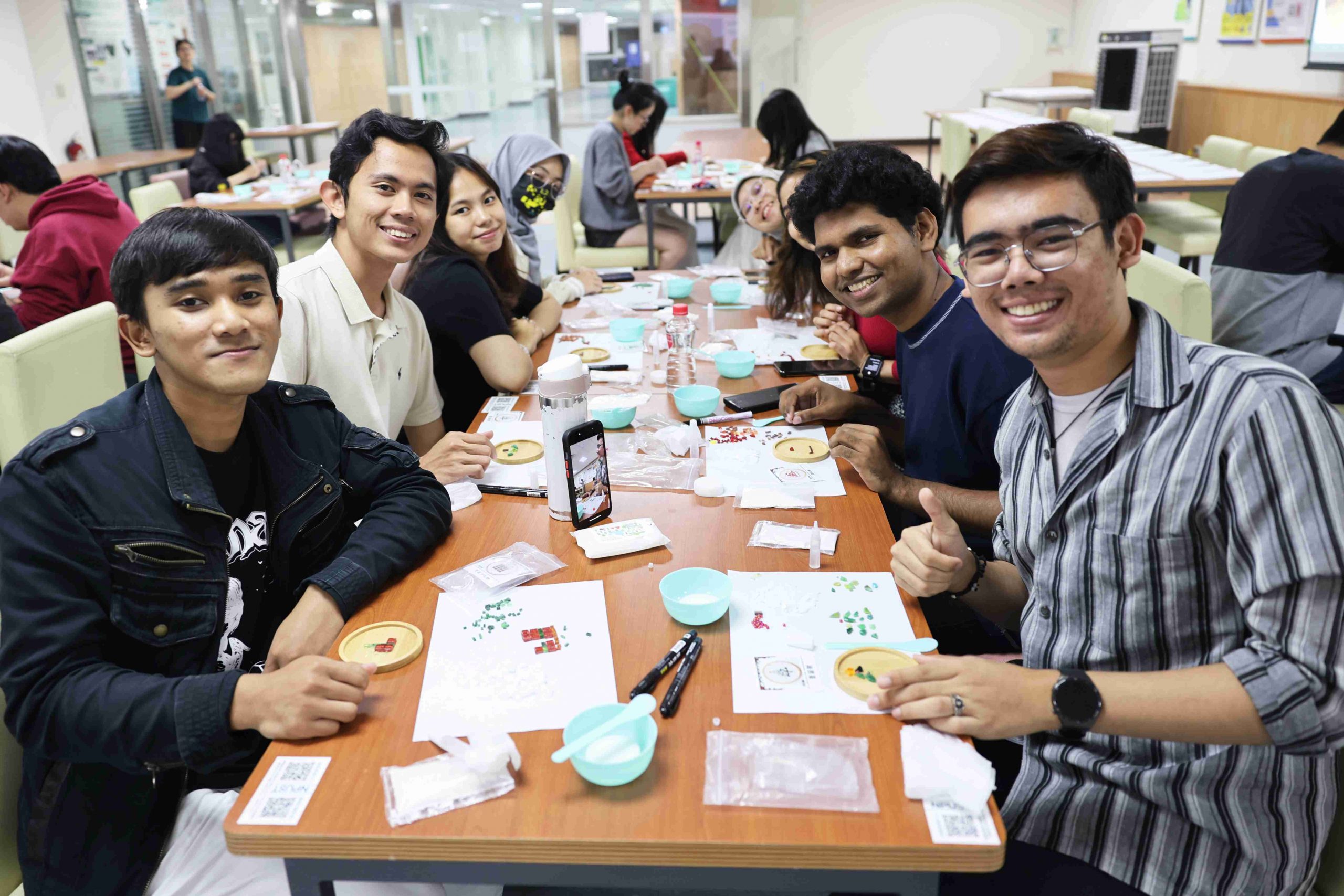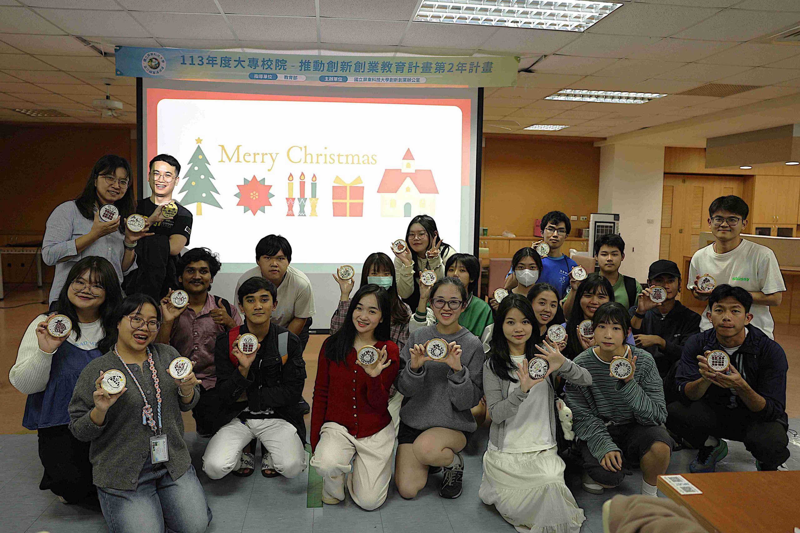 The Office of International Affairs (OIA) at National Pingtung University of Science and Technology (NPUST) hosted a creative DIY Christmas event in late December 2025 to welcome the holiday season with students and staff from around the globe. The workshop brought together 80 participants from diverse national backgrounds—including Taiwan, Malaysia, Indonesia, India, Thailand, Vietnam, the Philippines, Brunei, Saint Lucia, Haiti, and Saint Vincent and the Grenadines—to craft mosaic coasters and share warmth and blessings through the creative process.