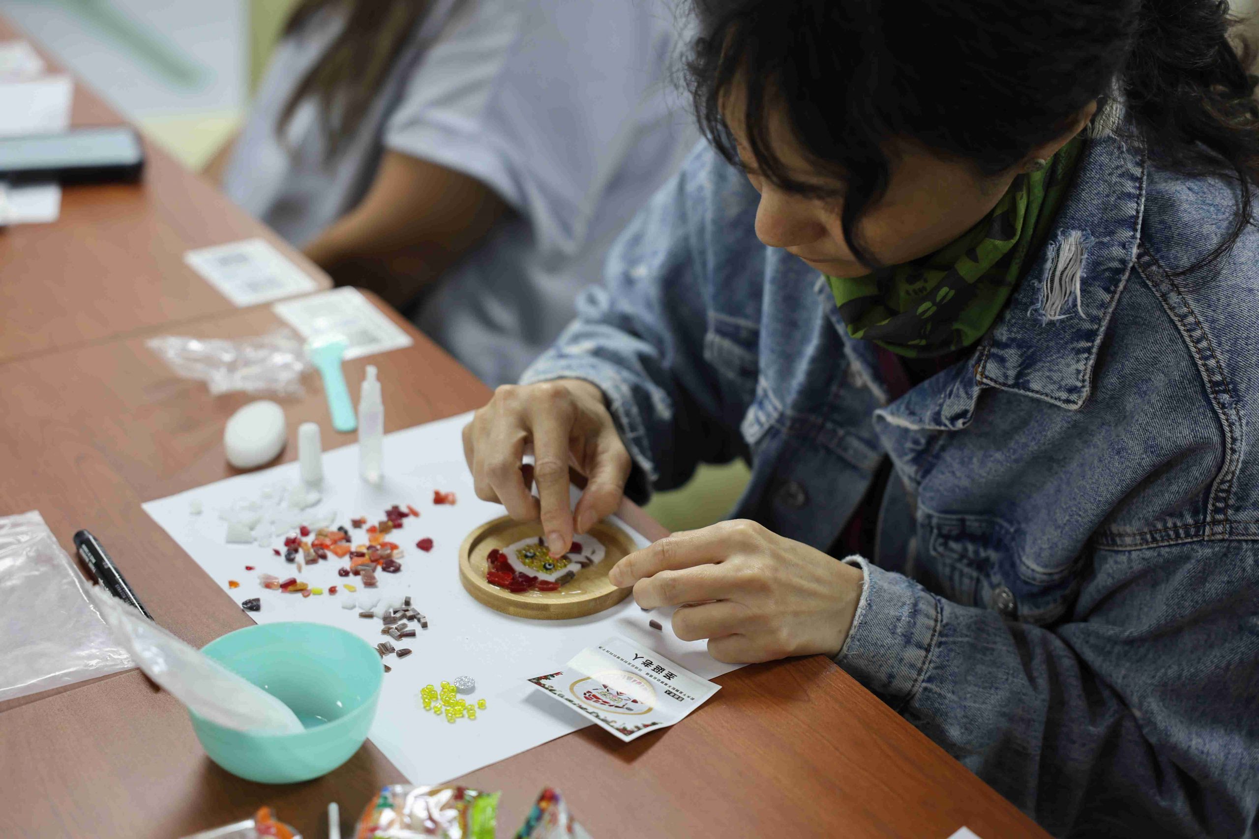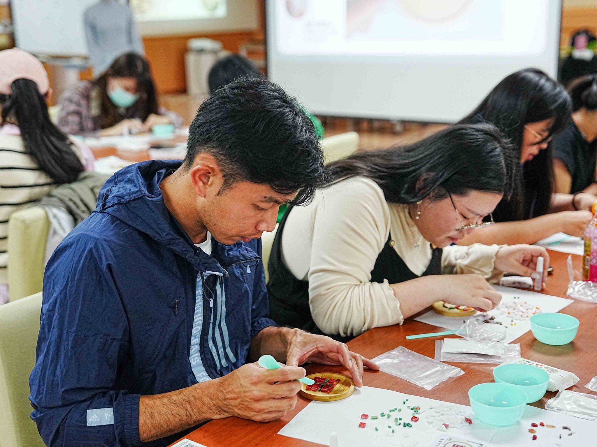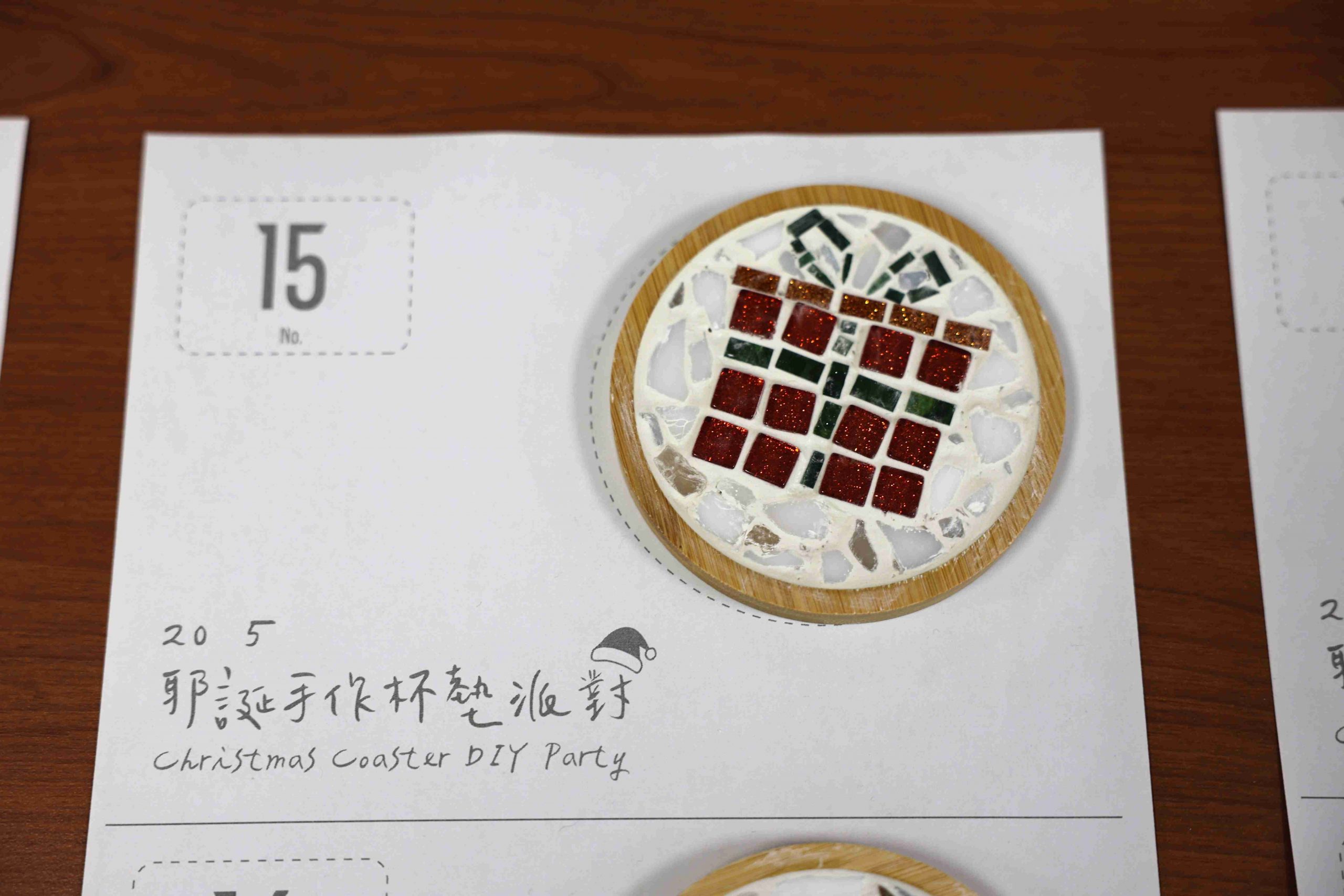The highlight of the event was the “Blessing Exchange” activity. For this segment, rather than keeping their own handiwork, participants received a coaster made by someone else. A staff member dressed as Santa Claus distributed the finished pieces based on randomized seat numbers, adding an element of anticipation and surprise. Before beginning their work, each participant wrote a heartfelt message and signed the back of their coaster, transforming the craft into a meaningful vessel of holiday cheer.
