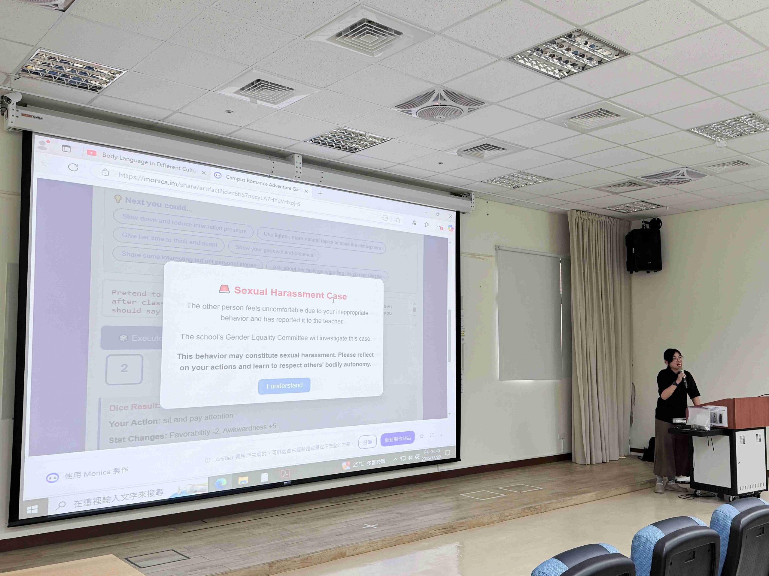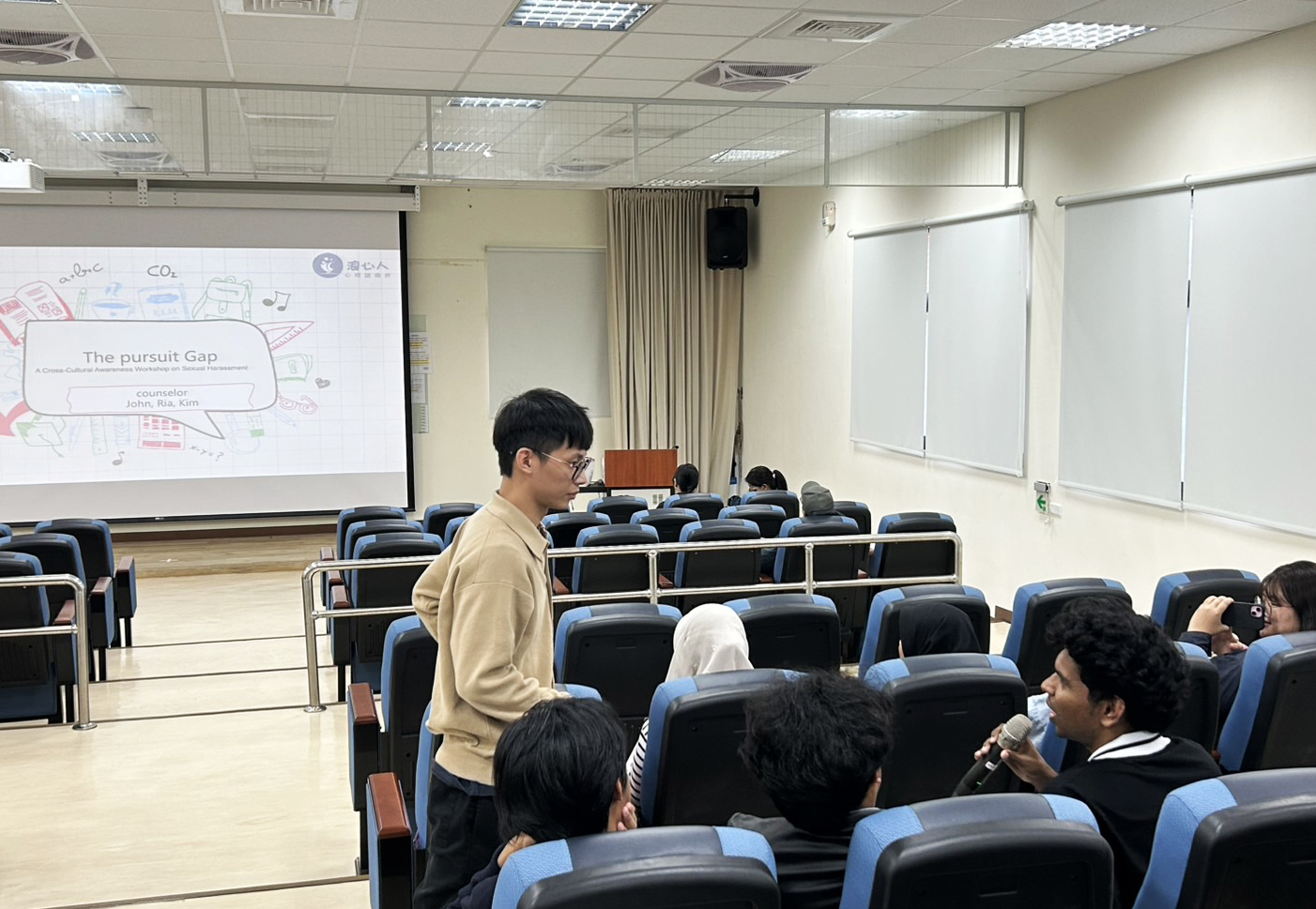 As cross-cultural exchange becomes increasingly frequent, the act of “pursuing” intimate relationships often leads to misunderstandings due to differing cultural backgrounds, gender expectations, and upbringings. Taking an interactive approach, the workshop explored daily experiences to help students reflect on boundaries and gender relations, and thereby enhance their awareness of gender equality and cross-cultural differences.