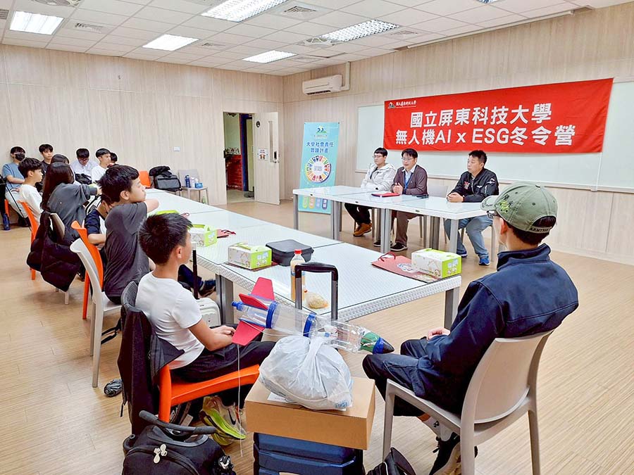 The Smart Mechatronics Bachelor Degree Program at National Pingtung University of Science and Technology (NPUST) has long been promoting the “Southern Taiwan Dreams of Flying” University Social Responsibility (USR) project—an initiative which focuses on deepening aerospace science education and cultivating industrial talent in the Pingtung and Kaohsiung area. Furthering the cause, the university hosted the “AI × ESG High School Drone Technology Experience Camp” during the winter break, organizing activities under the theme of “Popular Science, Tourism and Revitalization”. The event attracted students from gifted science and mathematics classes at Pingtung Girls’ Senior High School, Feng-Shan Senior High School, and Chao-Chou Senior High School.
