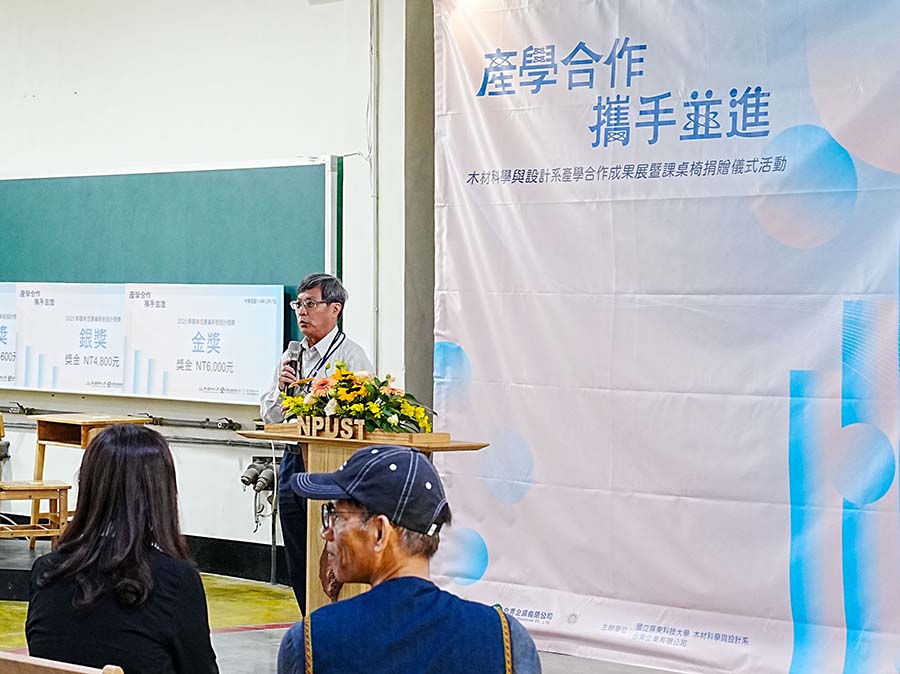 To mark the occasion, the university hosted the 2025 “Book Nest” Innovation Design Competition Award Ceremony and Wood Science and Design Department Industry-Academia Collaboration Achievement Exhibition. During the event, faculty members presented various research outcomes, including campus furniture design, sustainable timber utilization, and spatial improvement strategies. NPUST President Dr. Chin-Lung Chang emphasized the university’s commitment to “integrating theory with practice,” noting that true learning occurs when students engage with real-world industrial environments. He expressed gratitude to the Pingtung County Government and Ho Ching Enterprise for providing a platform where students can realize their professional potential.